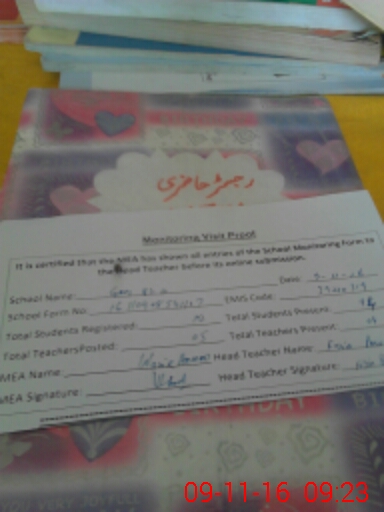 | Attendance Register | Head Teacher | MEA with School | Visit Proof |