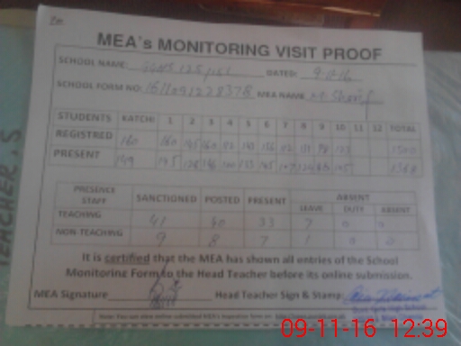 | Attendance Register | Head Teacher | MEA with School | Visit Proof |