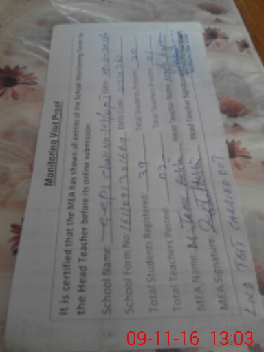 | Certified that this School was Inspected by the Undersigned MEA/DMO Today and the Information Stated Above is as Per Record. | |||||