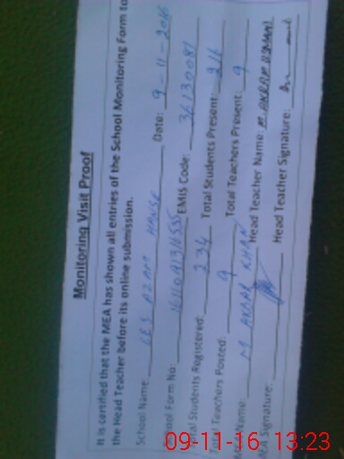 | Attendance Register | Head Teacher | MEA with School | Visit Proof |