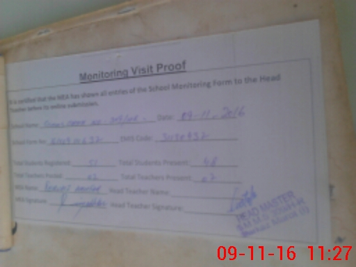 | Attendance Register | Head Teacher | MEA with School | Visit Proof |