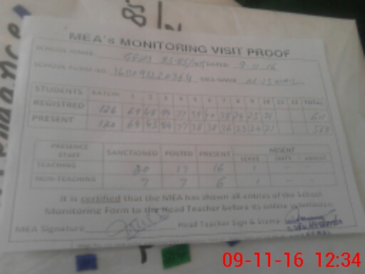 | Attendance Register | Head Teacher | MEA with School | Visit Proof |