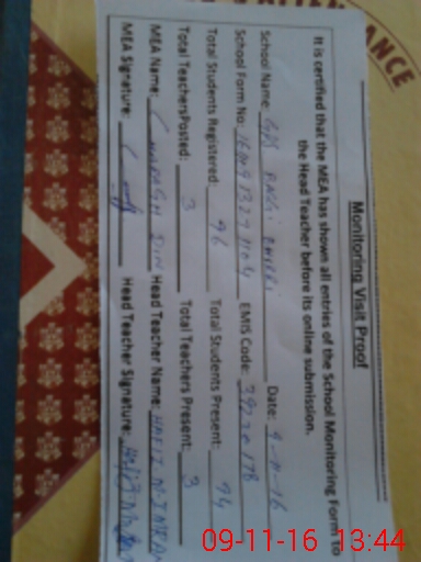 | Certified that this School was Inspected by the Undersigned MEA/DMO Today and the Information Stated Above is as Per Record. | |||||