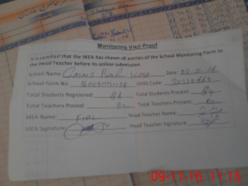 | Attendance Register | Head Teacher | MEA with School | Visit Proof |