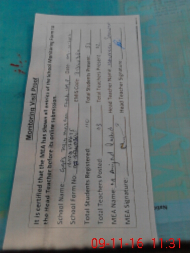 | Attendance Register | Head Teacher | MEA with School | Visit Proof |