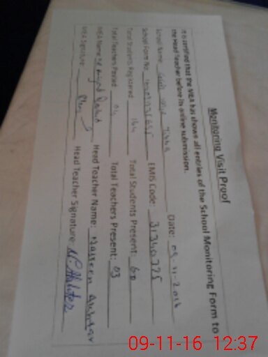 | Attendance Register | Head Teacher | MEA with School | Visit Proof |