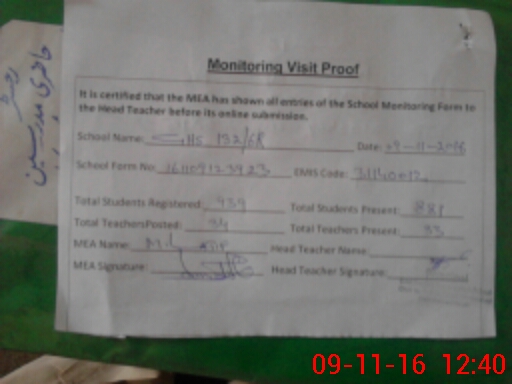 | Certified that this School was Inspected by the Undersigned MEA/DMO Today and the Information Stated Above is as Per Record. | |||||