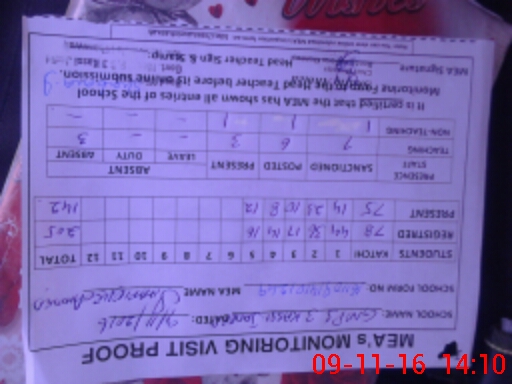 | Attendance Register | Head Teacher | MEA with School | Visit Proof |