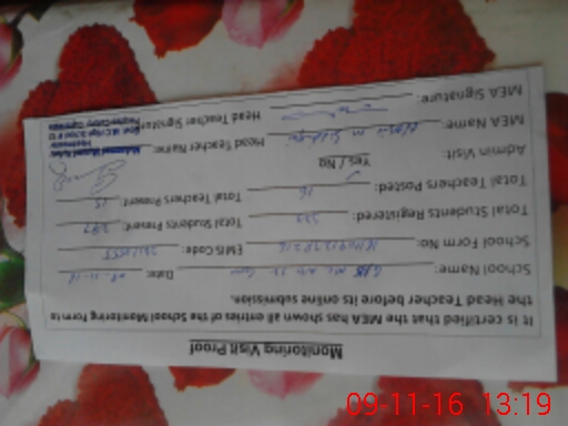 | Certified that this School was Inspected by the Undersigned MEA/DMO Today and the Information Stated Above is as Per Record. | |||||