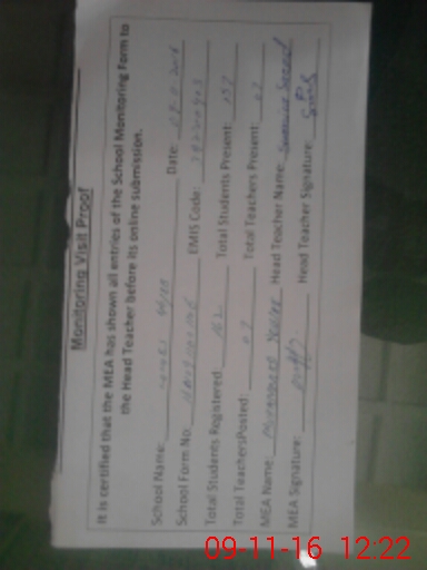 | Attendance Register | Head Teacher | MEA with School | Visit Proof |