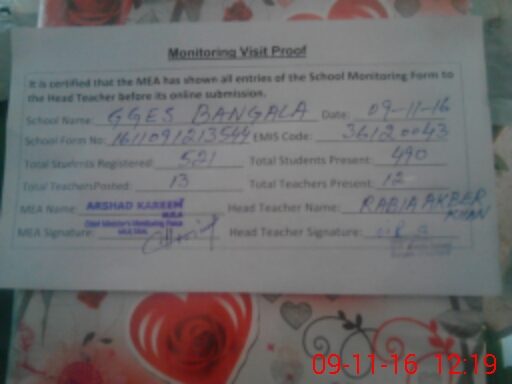 | EMIS Code: 36120043 | Name of School: GGHS BANGALA SHUJABAD | |||