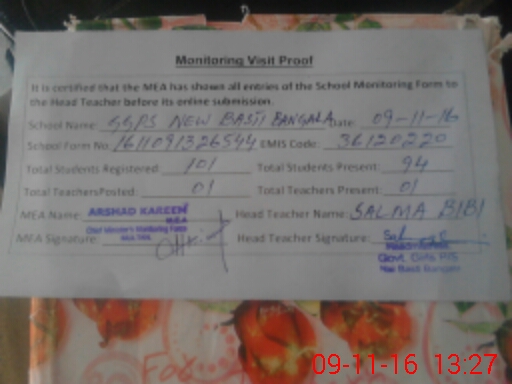 | EMIS Code: 36120220 | Name of School: GGPS NEW BASTI BANGLA SHUJABAD DISTT. MULTAN | |||
