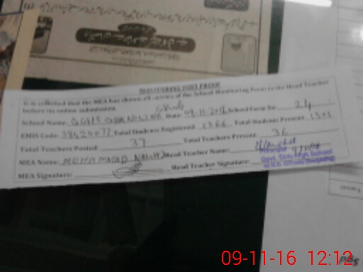 | Attendance Register | Head Teacher | MEA with School | Visit Proof |