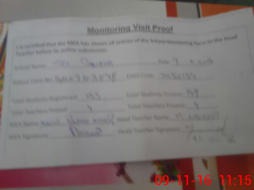 | Attendance Register | Head Teacher | MEA with School | Visit Proof |