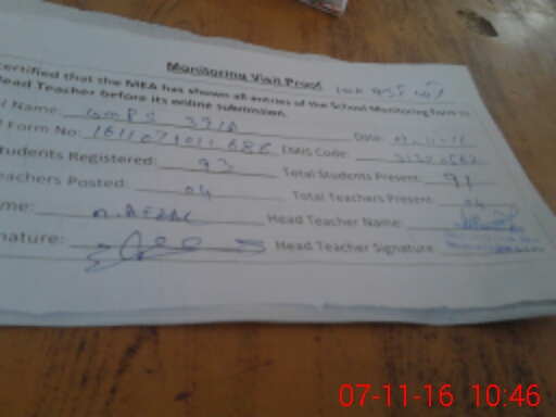 | Attendance Register | Head Teacher | MEA with School | Visit Proof |