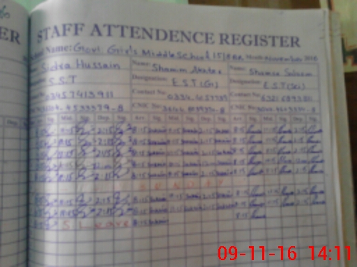 | CNIC | Full Name | Designation | R/C | Absence During Last Calender Month |