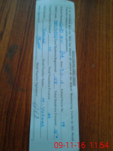 | Attendance Register | Head Teacher | MEA with School | Visit Proof |