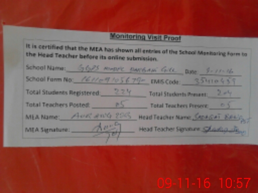 | Certified that this School was Inspected by the Undersigned MEA/DMO Today and the Information Stated Above is as Per Record. | |||||