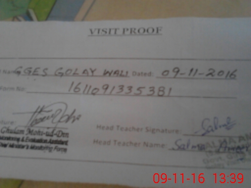 | EMIS Code: 38230848 | Name of School: GGES GOLAY WALI | |||