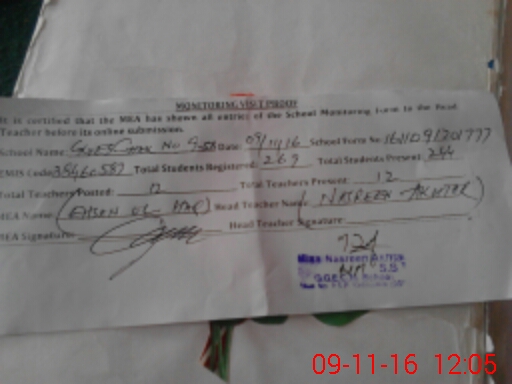| Attendance Register | Head Teacher | MEA with School | Visit Proof |
