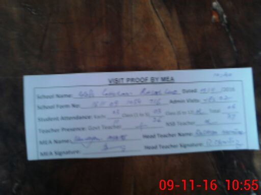 | Attendance Register | Head Teacher | MEA with School | Visit Proof |