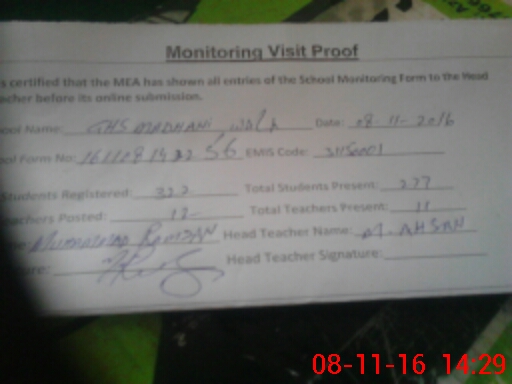 | Certified that this School was Inspected by the Undersigned MEA/DMO Today and the Information Stated Above is as Per Record. | |||||