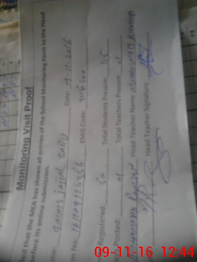 | Total no. of Classrooms: 1 No. of Classrooms Used for Teaching: 1 No. of Classrooms Storing Old Furniture, FTBs, etc: 0Comments if Any: GMMS JAJJAL SARU RUNING IN MASJID |