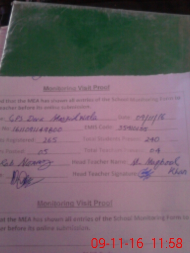 | EMIS Code: 35410135 | Name of School: GPS DERA MASJID WALA | |||