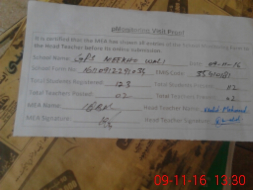 | EMIS Code: 35410181 | Name of School: GPS MEEKHO WALI KALA KHATAI ROAD | |||