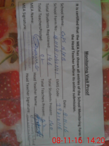 | EMIS Code: 39210116 | Name of School: GPS 16 KB | |||