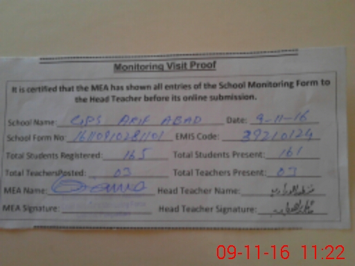 | EMIS Code: 39210124 | Name of School: GPS ARIF ABAD | |||