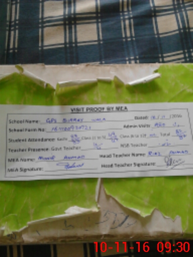 | Monitoring Date: 10-11-2016 | Start Time: 10-11-2016 09:08 AM | End Time: 10-11-2016 09:31 AM | Name of MEA: Mu**** Ah**** (R**** | |