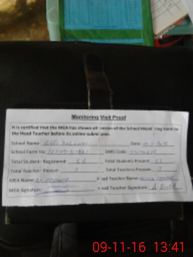 | Attendance Register | Head Teacher | MEA with School | Visit Proof |