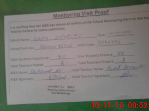 | Certified that this School was Inspected by the Undersigned MEA/DMO Today and the Information Stated Above is as Per Record. | |||||