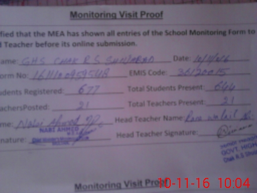 | EMIS Code: 36120015 | Name of School: GHS CHAK R S SHUJABAD | |||