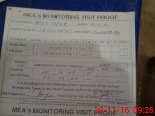 | Attendance Register | Head Teacher | MEA with School | Visit Proof |
