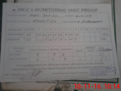 | Certified that this School was Inspected by the Undersigned MEA/DMO Today and the Information Stated Above is as Per Record. | |||||