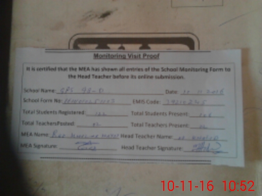 | EMIS Code: 39210245 | Name of School: GPS CHAK NO. 98/D | |||