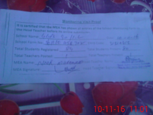| Certified that this School was Inspected by the Undersigned MEA/DMO Today and the Information Stated Above is as Per Record. | |||||