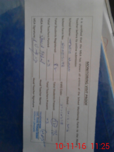 | Certified that this School was Inspected by the Undersigned MEA/DMO Today and the Information Stated Above is as Per Record. | |||||