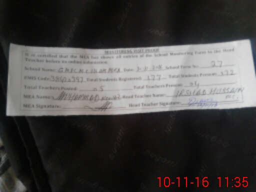| Attendance Register | Head Teacher | MEA with School | Visit Proof |