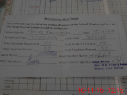| EMIS Code: 36110188 | Name of School: GPS MC RAHIMABAD MULTAN | |||