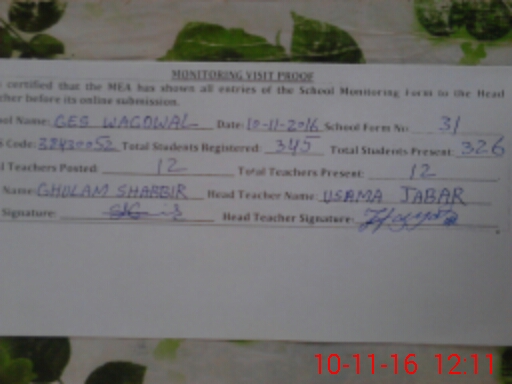 | EMIS Code: 38430052 | Name of School: GES WAGOWAL | |||