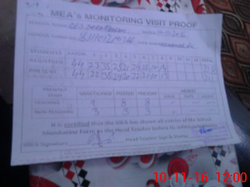 | Attendance Register | Head Teacher | MEA with School | Visit Proof |