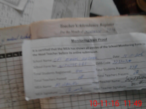 | Attendance Register | Head Teacher | MEA with School | Visit Proof |