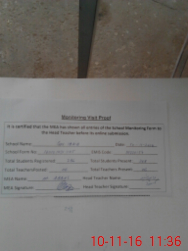 | Attendance Register | Head Teacher | MEA with School | Visit Proof |