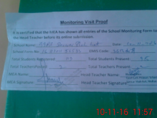 | EMIS Code: 36130479 | Name of School: GGPS SARWAR SHAH KOT | |||