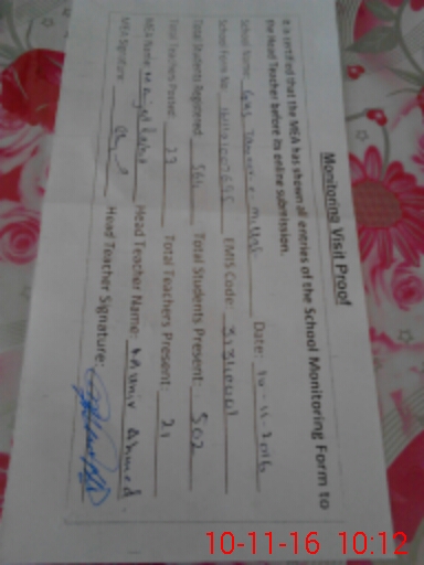 | Certified that this School was Inspected by the Undersigned MEA/DMO Today and the Information Stated Above is as Per Record. | |||||