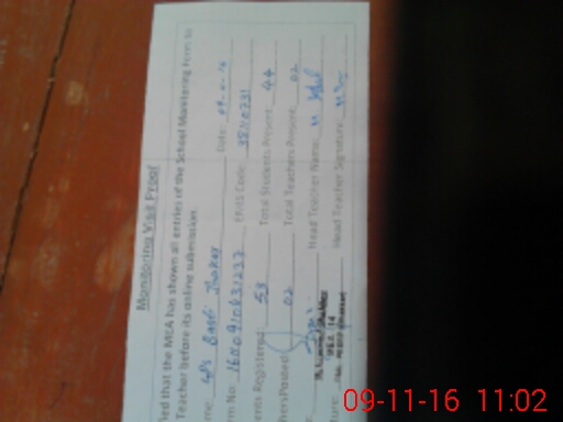 | Monitoring Date: 09-11-2016 | Start Time: 09-11-2016 10:26 AM | End Time: 09-11-2016 11:02 AM | Name of MEA: Mu**** Al**** | |