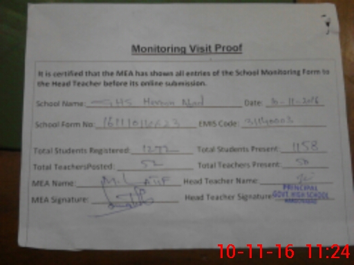 | Certified that this School was Inspected by the Undersigned MEA/DMO Today and the Information Stated Above is as Per Record. | |||||
